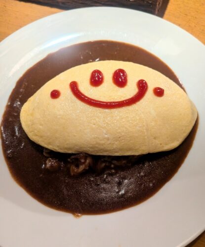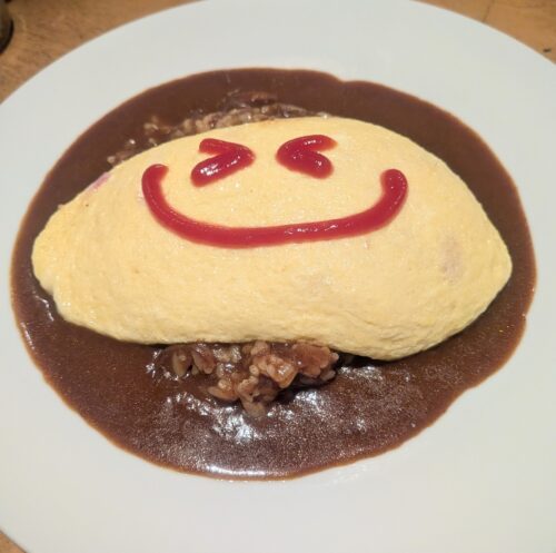 ソースは、デミグラスにしたけどカレーソースもあってあいがけメニューもあったので